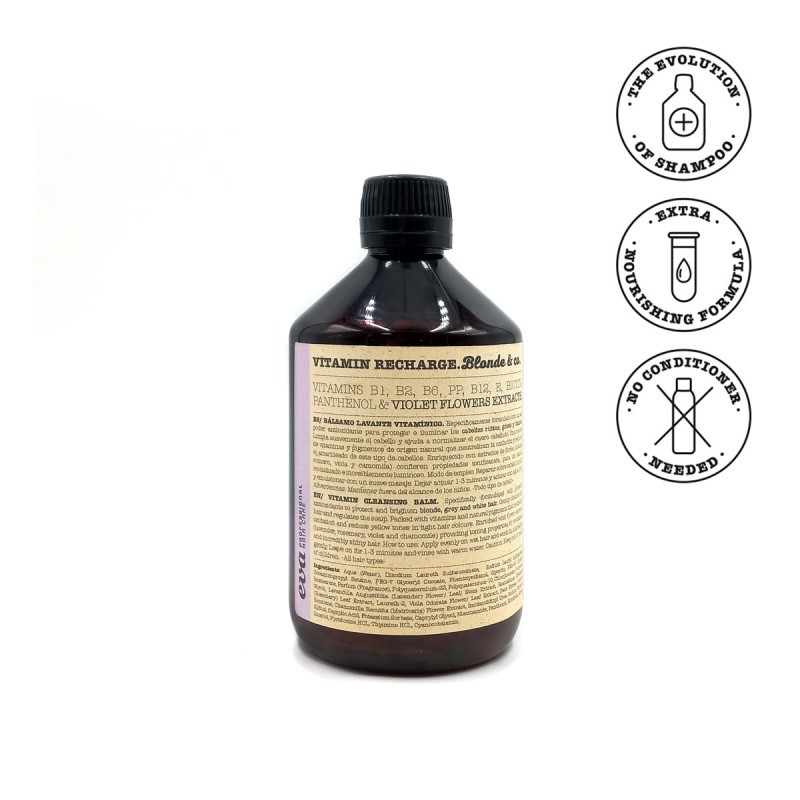 Shampooing vitaminé : Pour cheveux blonds, gris et/ou décolorés.