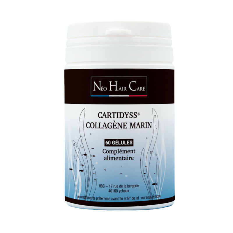 Les bénéfices de Cartidyss® sur la beauté des cheveux et des ongles sont soutenus par ses composants, tels que les peptides de collagène et les glycosaminoglycanes (chondroïtine, glucosamine, acide hyaluronique), avec des résultats cliniques visibles, dont une réduction de 25 % des rides, une augmentation de 38 % de la densité du derme, et un affinement du grain de la peau. La diminution de la dégradation des fibres de collagène contribue à l'amélioration de la densité du derme et limite l'apparition des rides.