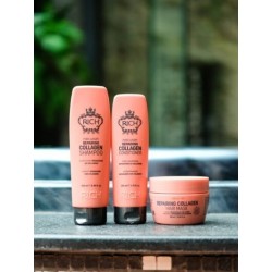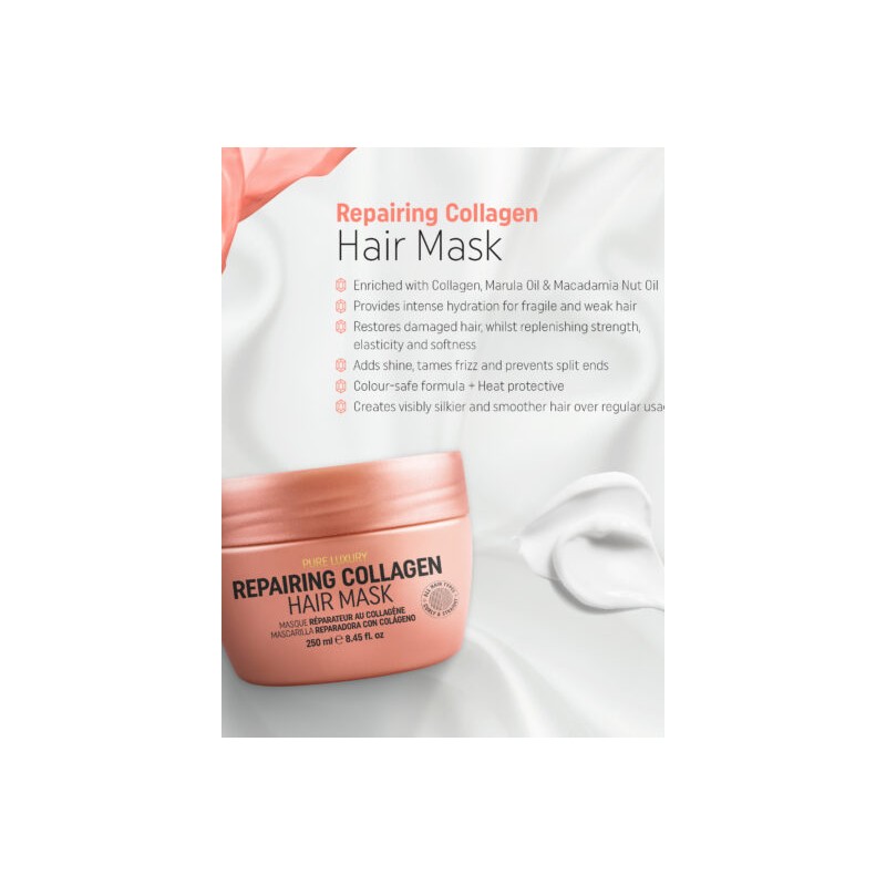 - Enrichi en huile de noix de macadamia, en huile de marula et en collagène pour réparer les cheveux abîmés, tout en leur redonnant force, élasticité et douceur.