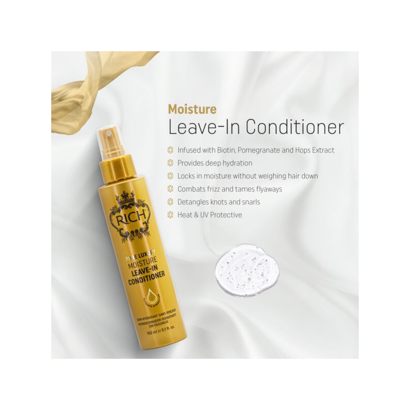 Formulé à base d'extraits botaniques de première qualité et d'ingrédients nourrissants, ce soin sans rinçage léger pénètre en profondeur pour hydrater intensément vos cheveux, les laissant irrésistiblement doux et faciles à coiffer. Que vos cheveux soient bouclés, lisses ou ondulés, le soin sans rinçage RICH Moisture est le complément idéal de votre routine capillaire quotidienne.